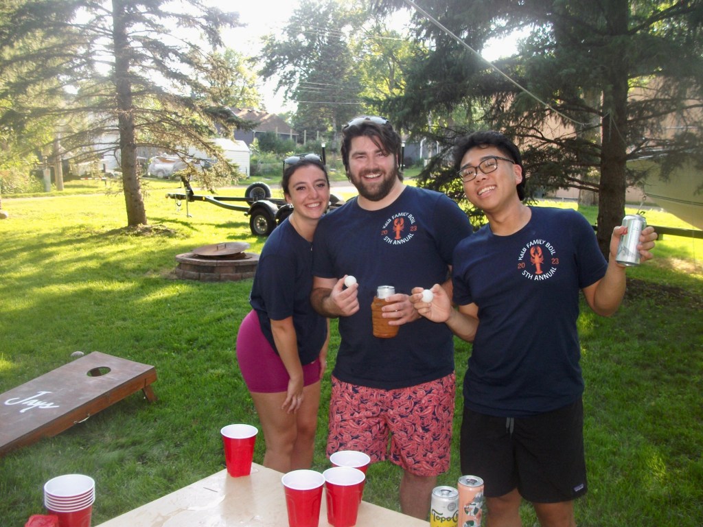 Dom celebrated his 18th birthday in New Jersey with our great uncle Donald, and enjoyed his last few weeks of Summer before heading off to start his Creighton adventure. After sharing a few ‘see you soon’ hugs, I headed back to the midwest myself for my friend Molly’s 5th annual Kalb Family Boil. The Boil takes place every year in the small (but quickly growing) town of Waconia, MN and is an event that isn’t to be missed. Molly, her five siblings, and their significant others throw the most legendary seafood boil. The weekend was filled with drinking games, baby Luke time (Molly’s adorable newborn nephew), and loads of crab, crawfish, potatoes, corn, and more. Molly is the only single one out of her siblings, but lucky for us that means we get to be her +1 (or +6) every year.