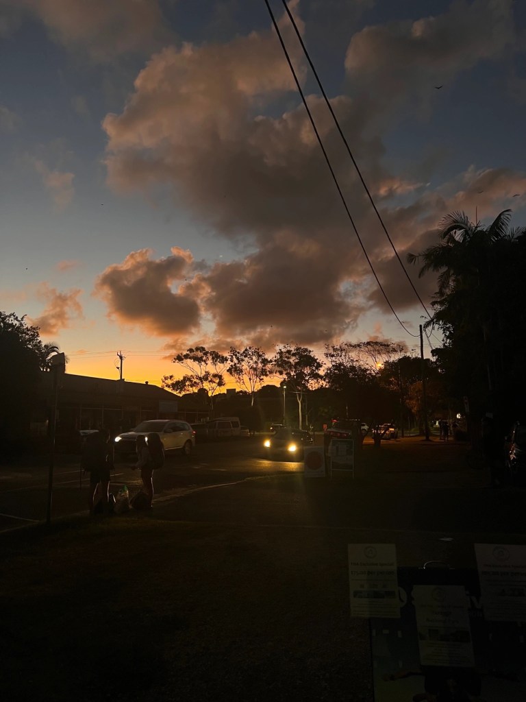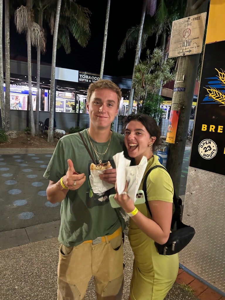 Byron Bay is home to Australia’s most easterly point and iconic Cape Byron lighthouse. The region is known for its spectacular beaches, unique shopping and dining experiences, and vibrant community spirit. G and I had only heard good things from Byron and were excited to spend a few days enjoying all that the coastal town has to offer. We went out for dinner last night at a small taco place called, Costa Taco. The chicken tacos were so tasty and exactly what we needed. We wanted to scope out the beach, so we walked down only to find ourselves at Byron beach club. G and I were prepared to have a chill, early night in, but when we came upon the beach club we noticed an event was about to take place. Sure enough, an artist called Elderbrook was performing. Elderbrook is an English EDM artist and G and I had actually seen him perform back home last September, as the opener to my all time favorite artist, Odesza. We were both stoked that he was performing, especially since we had no idea.